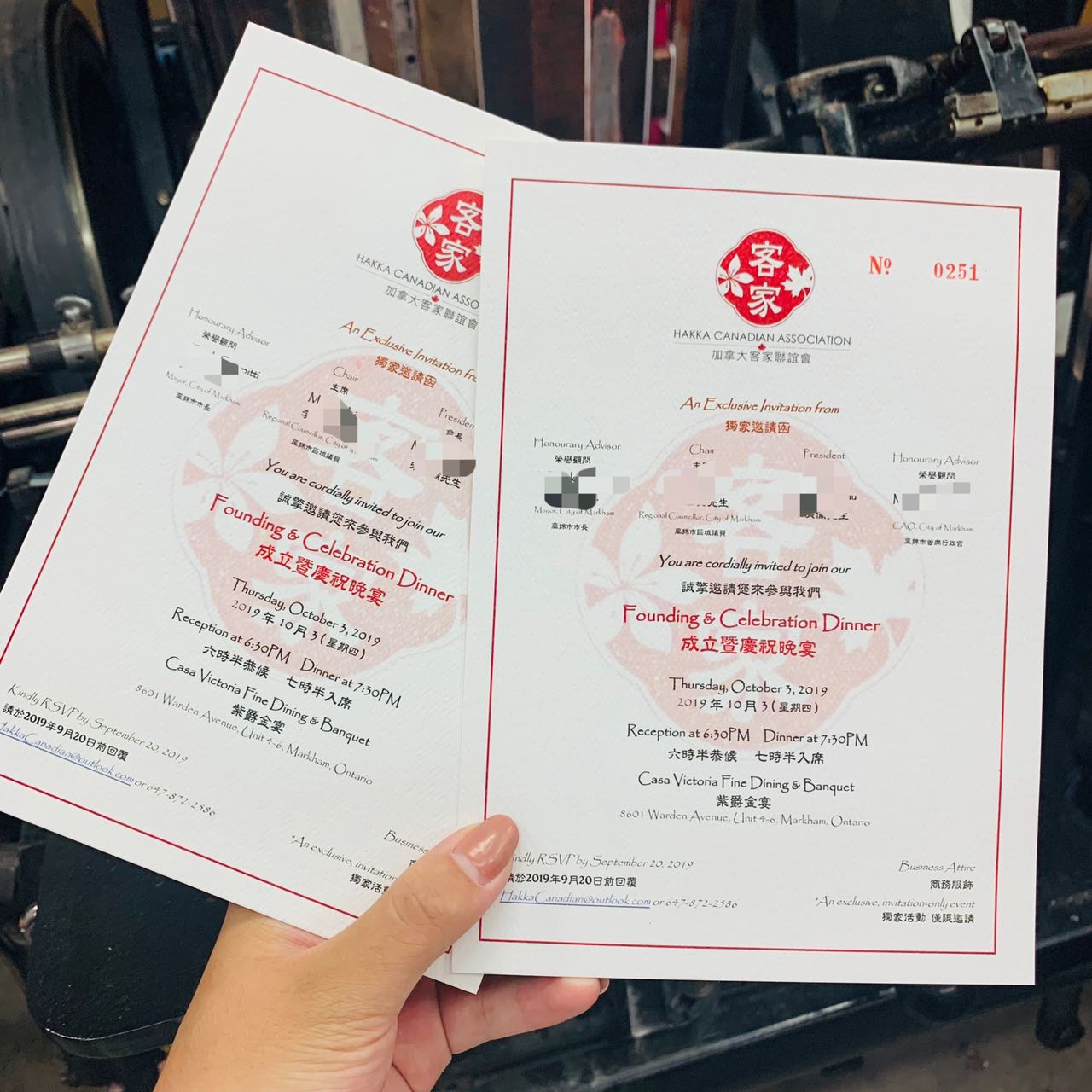 • Business or gala event invitations