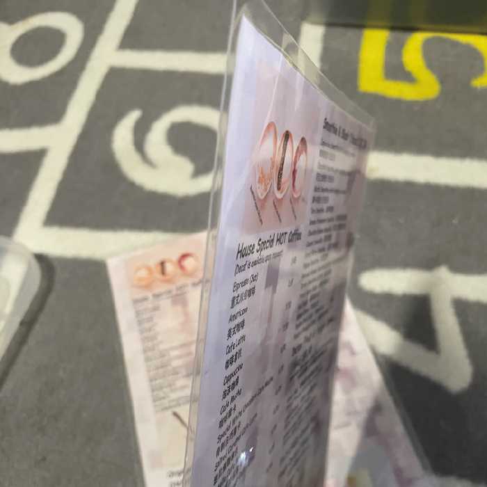 Looking for a custom size, custom corner style, or a special menu layout (QR menu + bilingual + icons)? Contact us for custom laminated menu options.