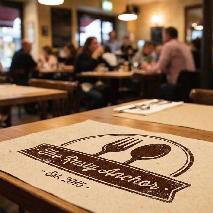 Custom printed table mats for restaurants, events, and promotions.