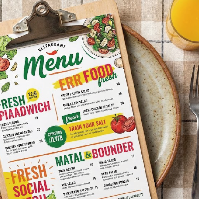 • Restaurant placemats (menus, QR codes, daily specials)