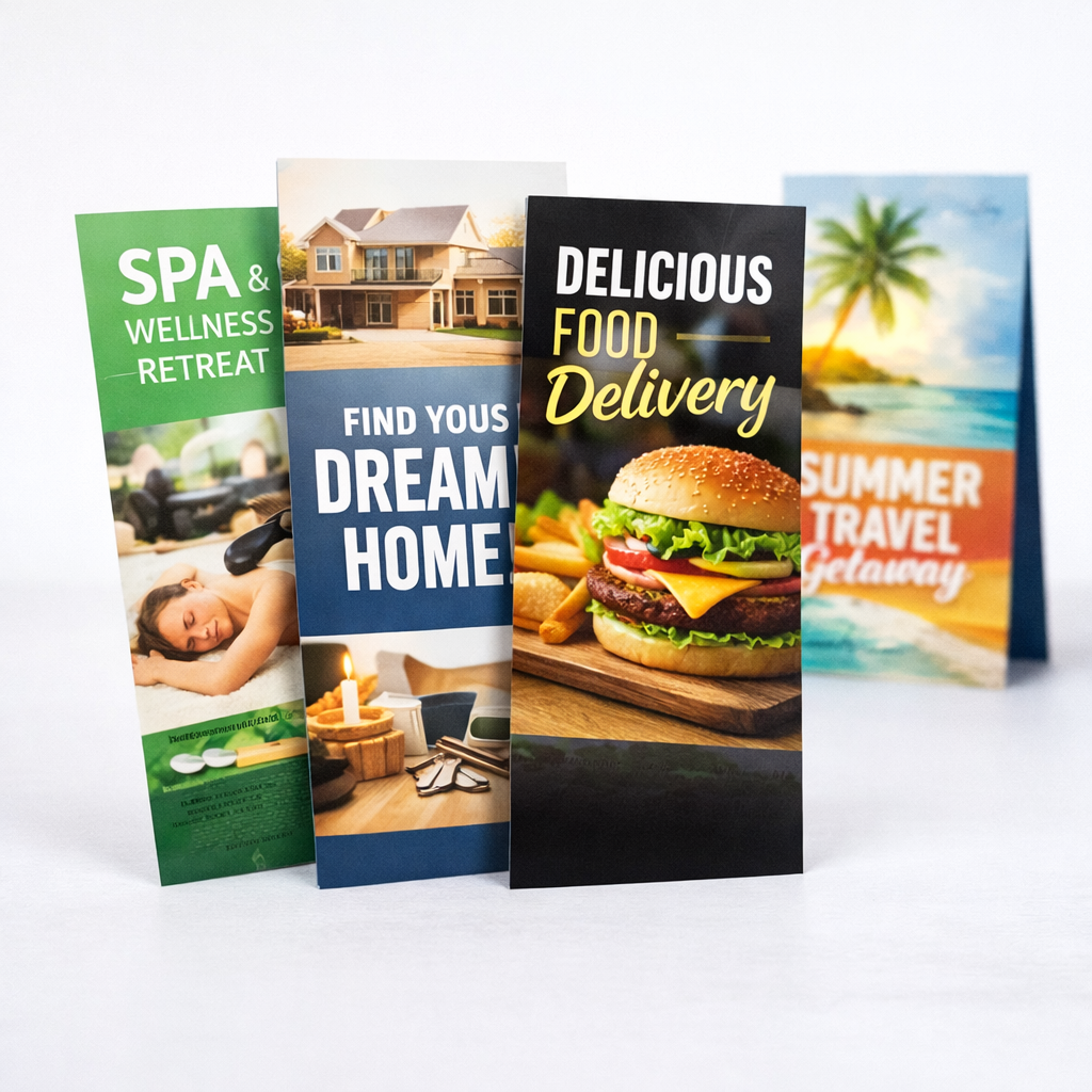 Slim rack cards made for lobbies, tourism, and display stands.