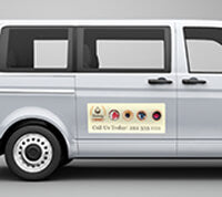 A thick magnet that can be placed on vehicle doors to add corporate branding.