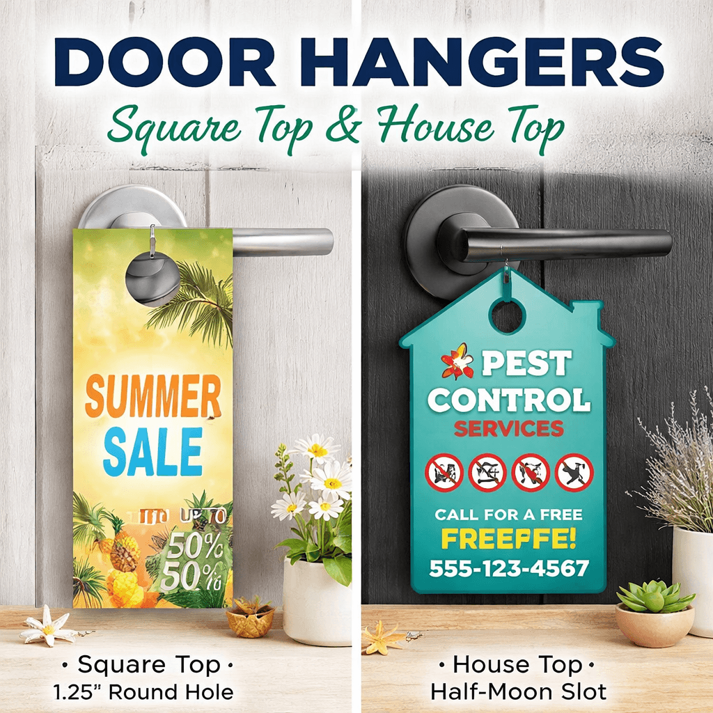 Choose from two popular door hanger styles to match different use cases and visual preferences: