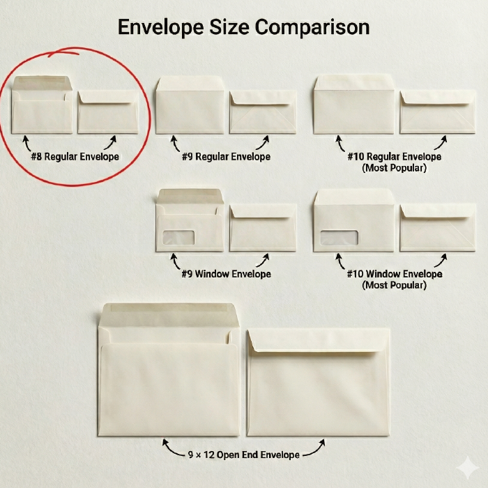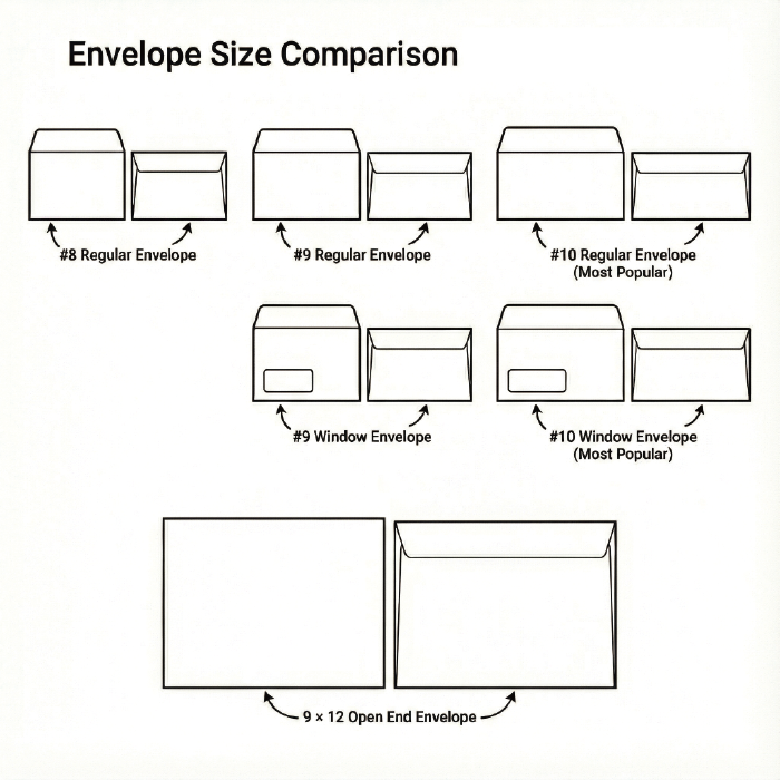 Choose the envelope type that fits your workflow (regular, window, or security) and print in Black & White for cost-effective mailing or Full Color for stronger brand impact.