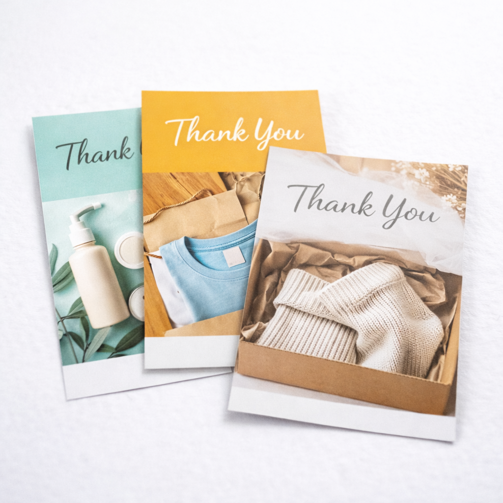 Box inserts and thank-you cards that boost unboxing experience.
