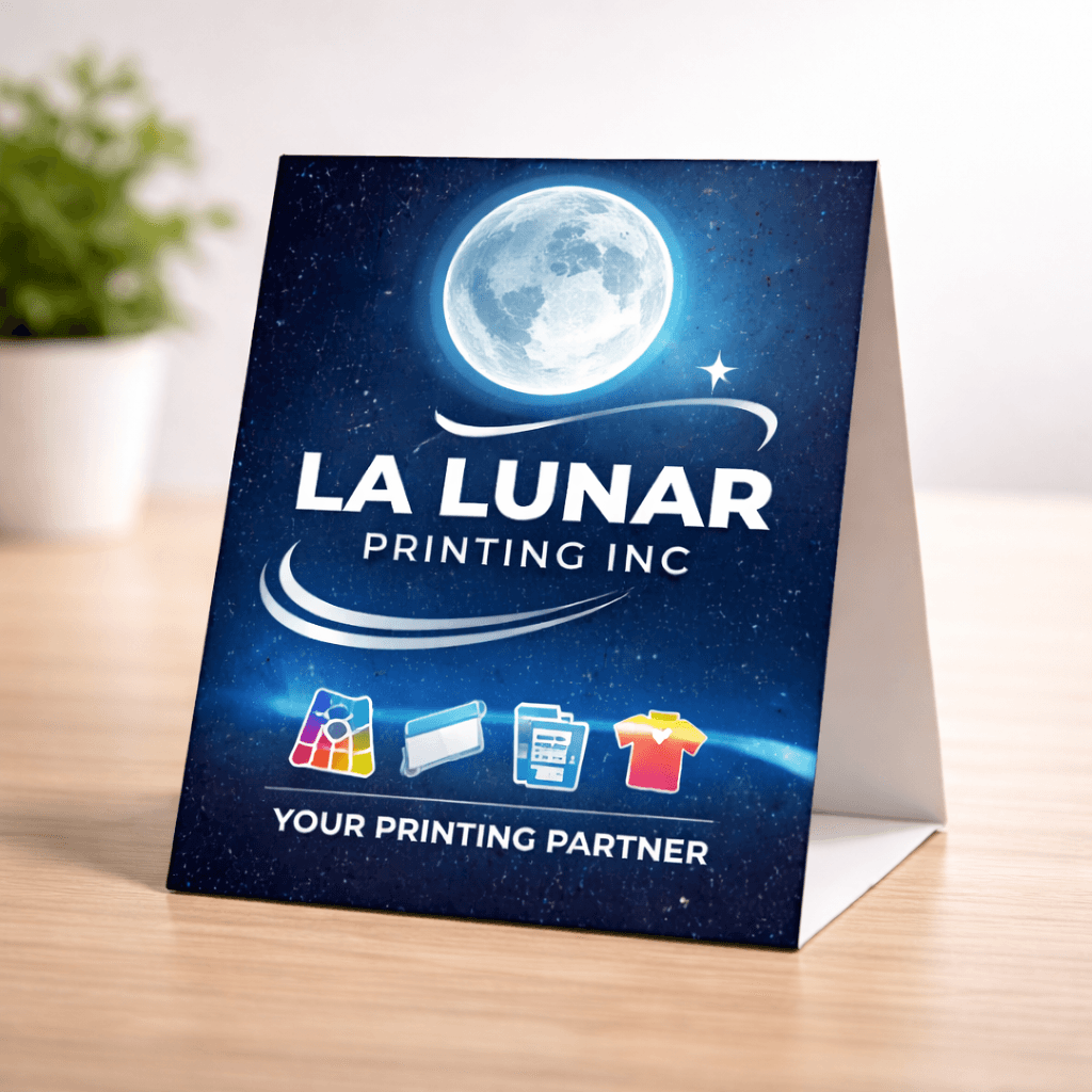 Countertop tent cards that stand up and sell instantly.